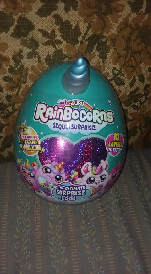 RainBoCorns - This one is for our ten year old daughter and she absolutely loves it. This is one that she's wanted for quite some time now, and was very excited when she saw that I was able to get her one. This is a really neat type of toy as it's one big egg with 10 layers for your child to hatch. It's an ultimate surprise egg, and this is a pretty large egg at that too!