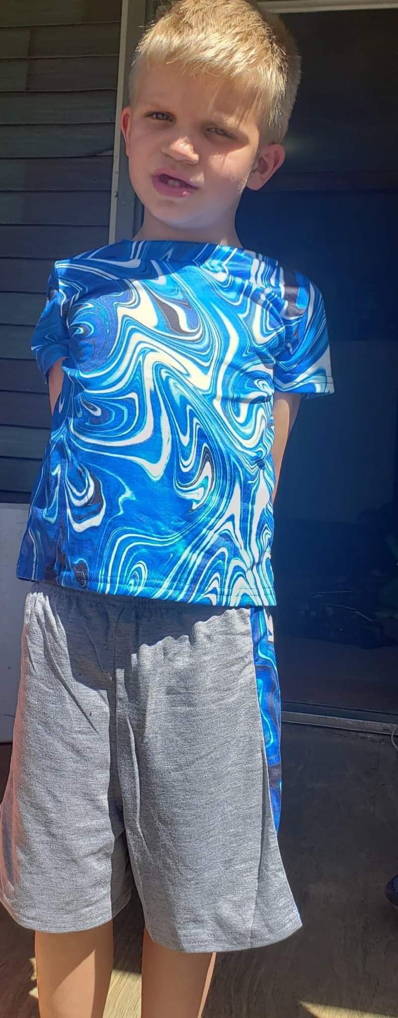 My younger son got some swimming trunks and my husband got a pair to match, as well as a new shirt for both of them too. This is my son with both on and he loves them and the colors too.